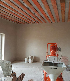 Механизированное нанесение штукатурки это современный подход к внутренней и внешней отделке. Иногда используются гипсовые и известково-гипсовые составы, которые делают стены идеально белыми и поддерживают совершенную геометрию. Помещение будет готово к любой отделке, а иногда используется и без нанесения дополнительных материалов, только лишь с финишной штукатуркой. Автоматика дает возможность быстро разобраться с этим отдельным этапом ремонтных работ. Она используется строителями для обработки площадей любого размера. Такой вид штукатурки более качественный и быстрый, чем выполненный вручную человеком.